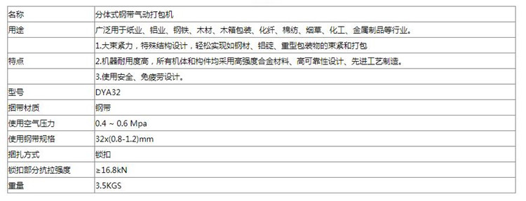 DYA32分體式鋼帶氣動(dòng)打包機(jī) 參數(shù)展示圖