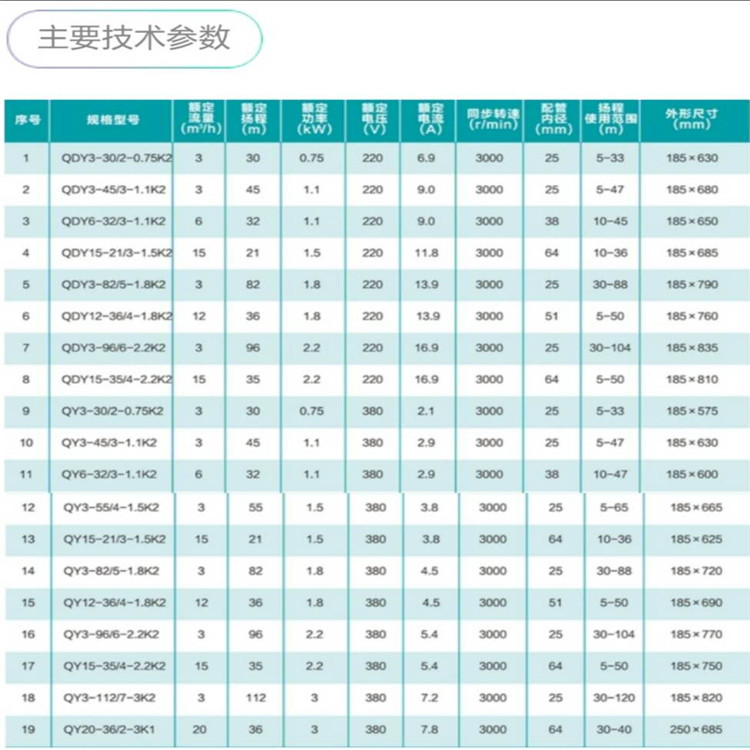 新界充油式潛水電泵參數(shù)圖