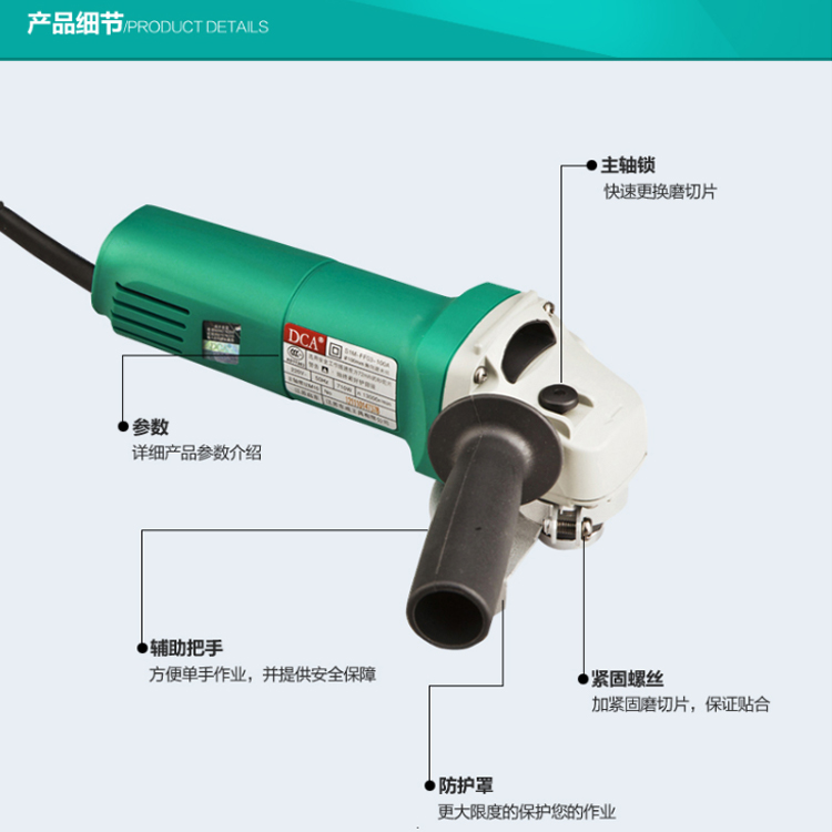 DCA角向磨光機(jī)S1M-FF-125A金屬防護(hù)罩高強(qiáng)度防護(hù)罩使用更加安全。