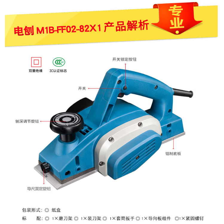 東成電刨 加厚全鋁底板,底板上有導(dǎo)流槽,能夠輕松把多余的木屑從導(dǎo)流槽飛出