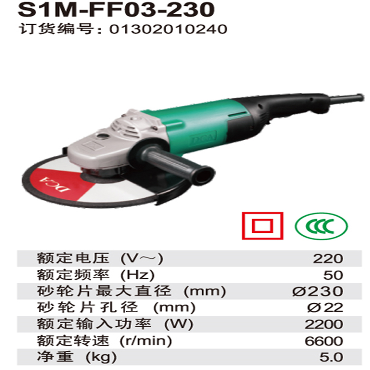 DCA角向磨光機S1M-FF03-230雙重絕緣機身 防漏電 有效避免漏電危險 安全使用
