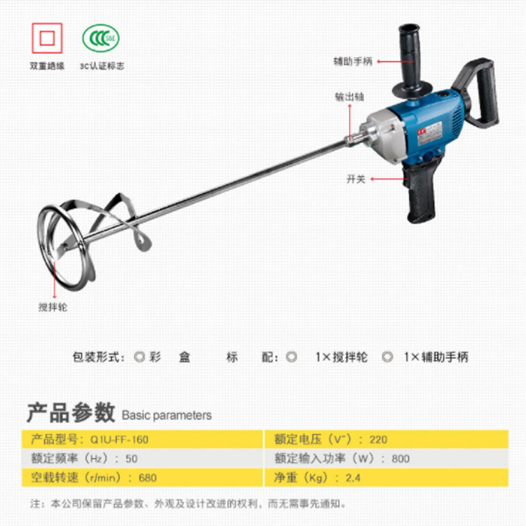 東成攪拌機Q1U-FF-160工業(yè)攪拌鉆可用于:膩子涂料、油漆、混凝土、水泥攪拌