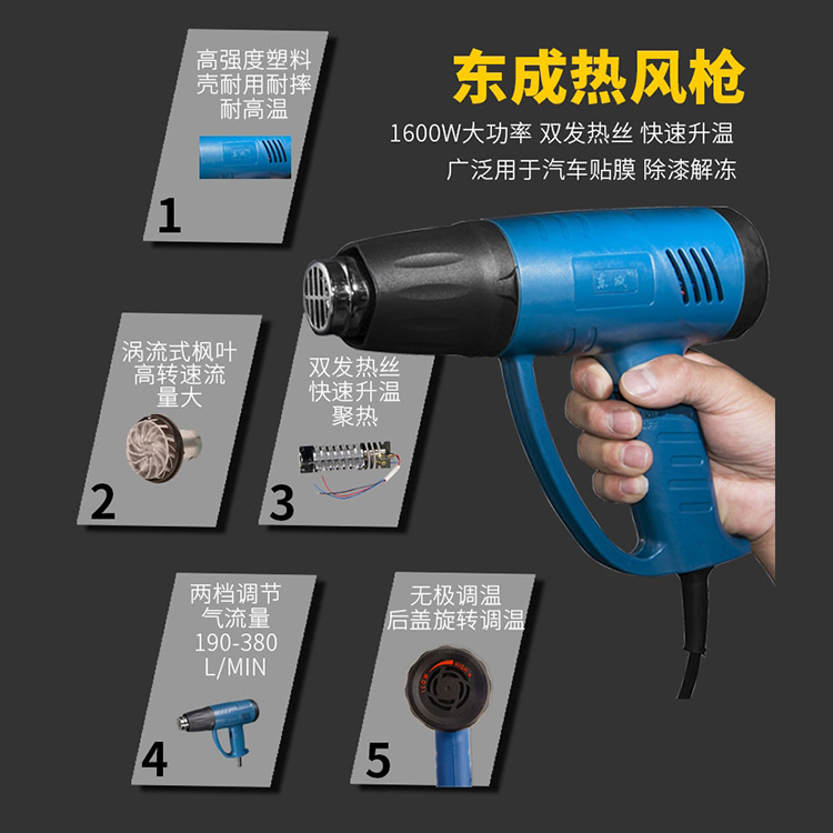 東成多功能熱風(fēng)槍無極調(diào)風(fēng)調(diào)溫/耐用防摔設(shè)計/全鋼聚熱風(fēng)嘴