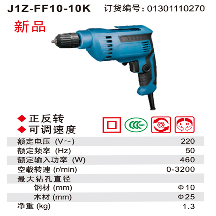 東成手電鉆J1Z-FF10-10K鉆頭范圍3-16毫米