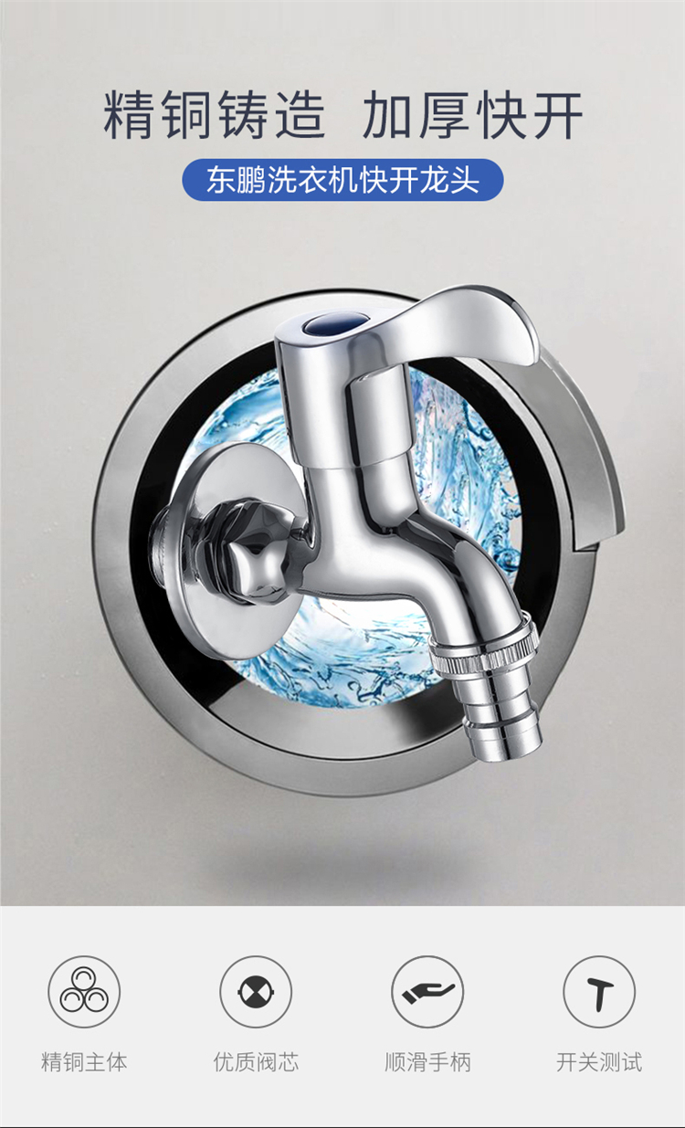 洗衣機(jī)水嘴 單冷快開(kāi)銅材質(zhì)龍頭銅鑄主體 創(chuàng)新凈鉛工藝 減少細(xì)菌污染,水質(zhì)更潔凈
