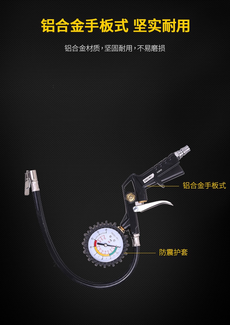 胎壓表采用鋁合金材質(zhì),堅固耐用,不易磨損