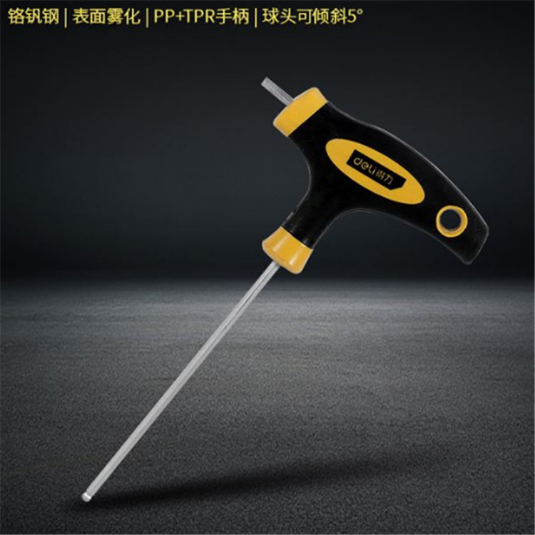 得力T型球頭內(nèi)六角采用優(yōu)質(zhì)鉻釩鋼制造,整體熱處理,硬度可達(dá)52-56HRC。