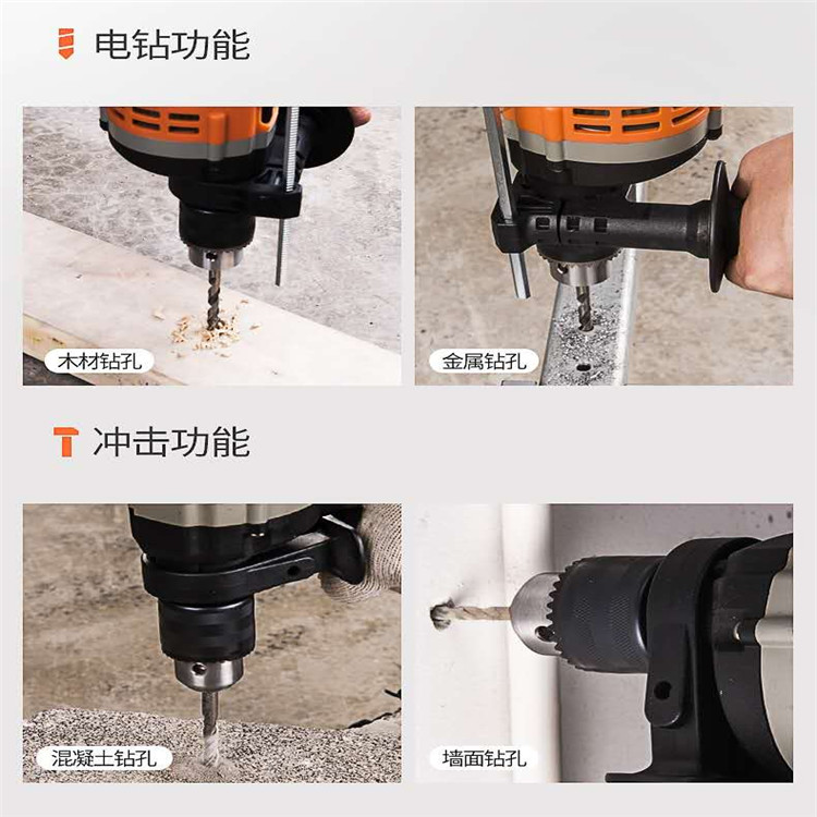 東成沖擊電鉆產(chǎn)品特點功率強勁、正反雙向、調速開關、雙重絕緣