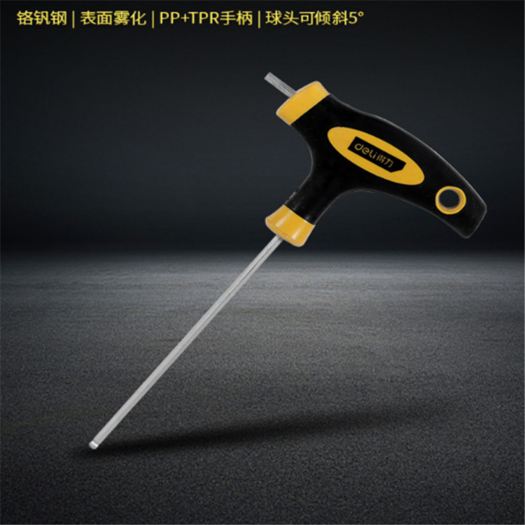 得力T型內(nèi)六角扳手表面霧化處理,有效防止反光。