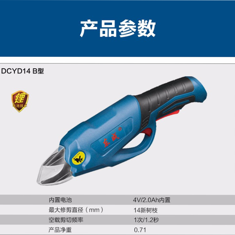 DCA充電式修枝剪DYD14(B型)強續(xù)航兩塊鋰電池,可持續(xù)工作6-8小時