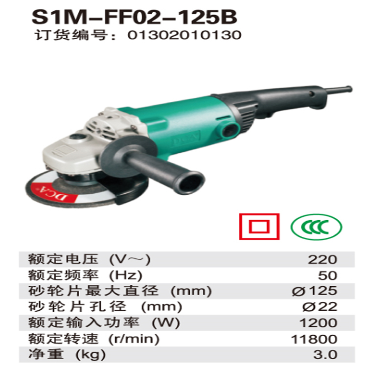 DCA角向磨光機(jī)S1M-FF02-125B雙重絕緣機(jī)身 防漏電