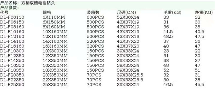 方柄鉆頭產(chǎn)品信息 請參照列表選購