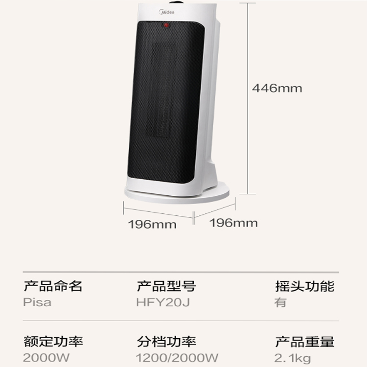 美的(Midea)暖風(fēng)機(jī)仰角7°出風(fēng),溫暖從腳到全身。