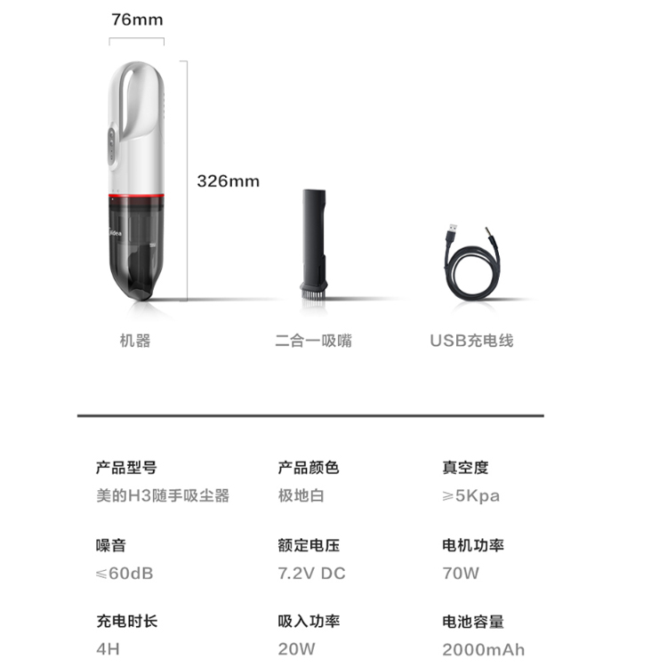 美的(Midea)手持車載吸塵器內(nèi)置高性能電機(jī),小身材大能量。