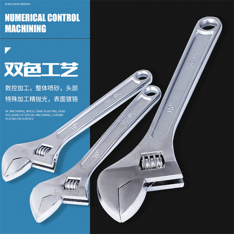 東成活動(dòng)扳手?jǐn)?shù)控加工,整體噴砂,頭部特殊精拋光,表面鍍鉻。