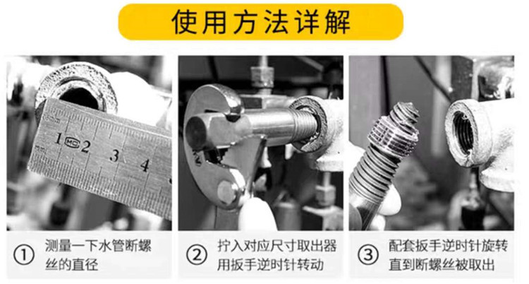 螺絲拆除器旋轉(zhuǎn)取出器折斷螺栓時(shí)嚴(yán)禁用力過猛 以防取出器被折斷