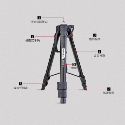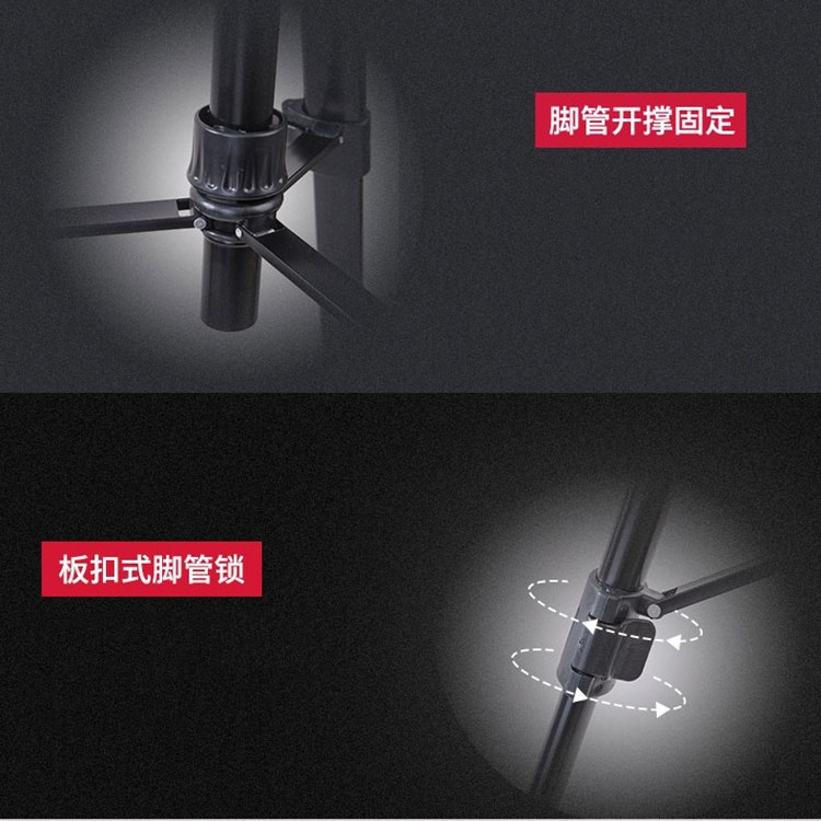 三角架腳管撐開角度固定旋鈕,連接架鎖緊旋鈕,控制連接張開角度;
