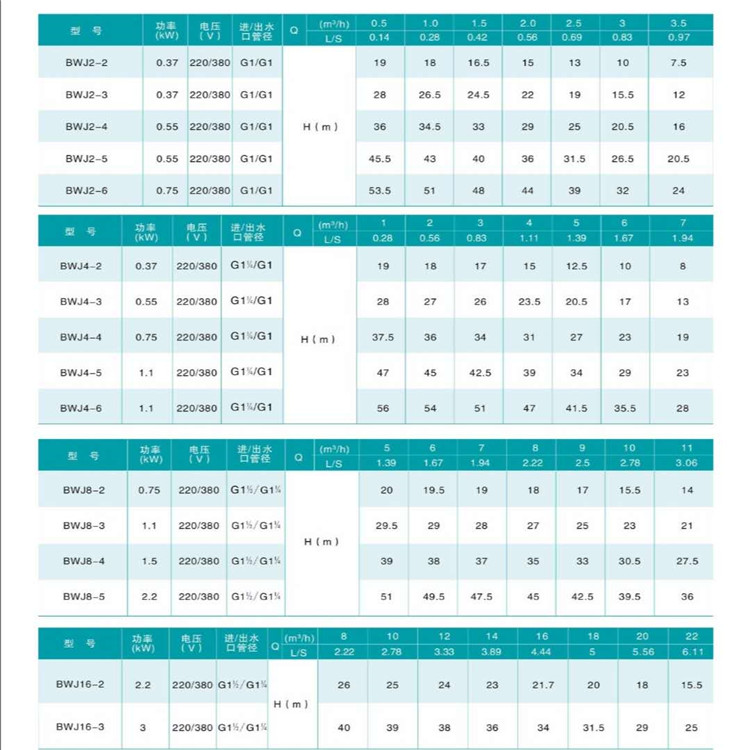 新界不銹鋼多級離心泵參數(shù)圖