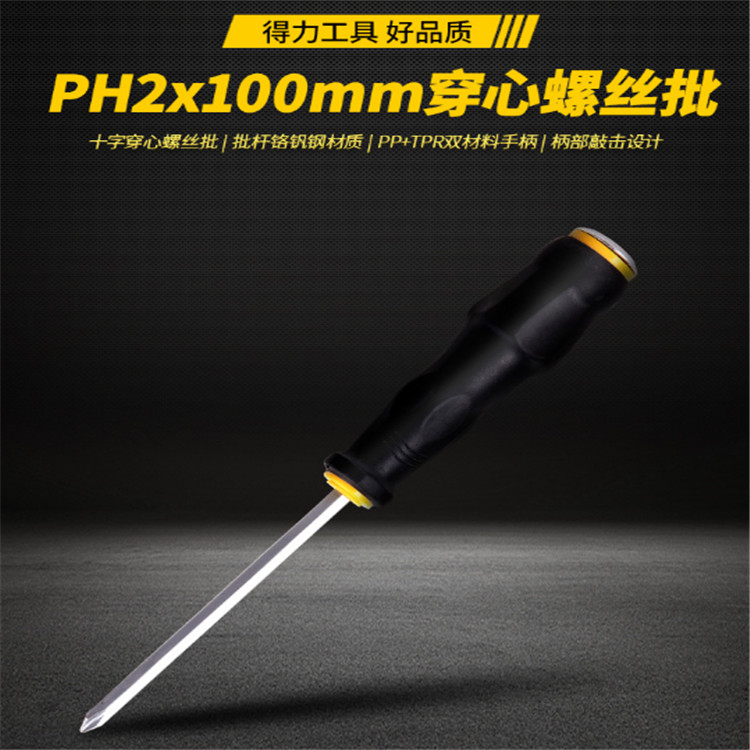 得力十字橡塑柄穿心螺絲批鉻釩鋼可敲擊穿心螺絲刀手動工具起子