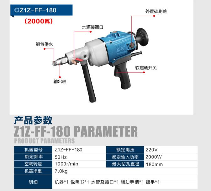 東成金剛石鉆孔機Z1Z-FF-180 相關(guān)參數(shù)