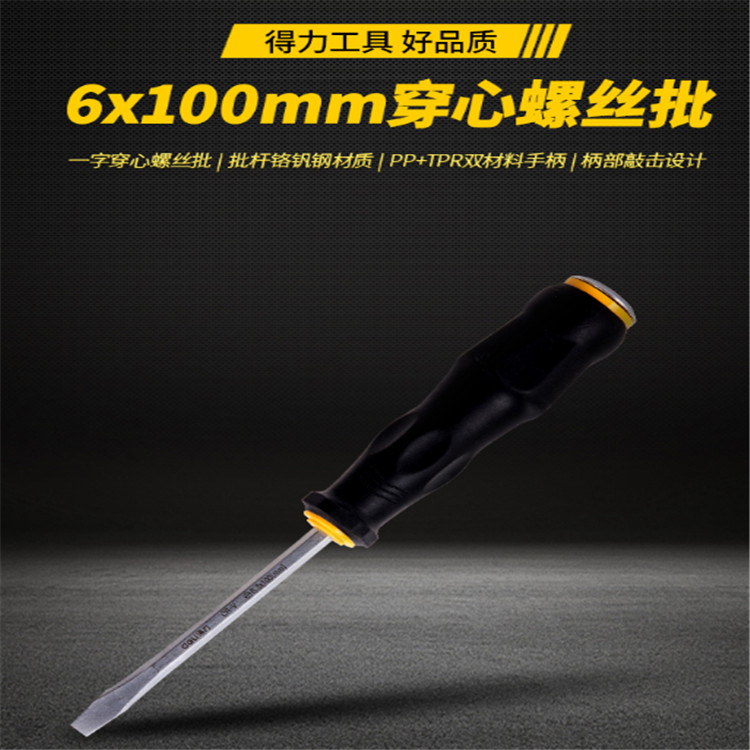 得力工具一字穿心螺絲刀橡塑雙材料手柄,防滑,耐油,防刮,柄部敲擊設(shè)計(jì),貫通式批桿。