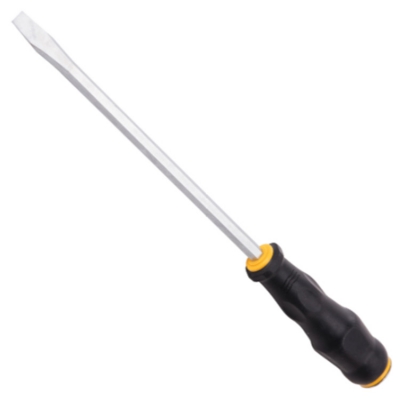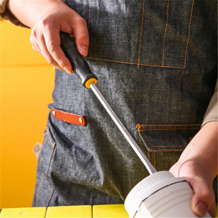 得力鉻釩鋼橡膠柄批桿為鉻釩鋼整體淬火而成,硬度高,韌性好,更耐用。