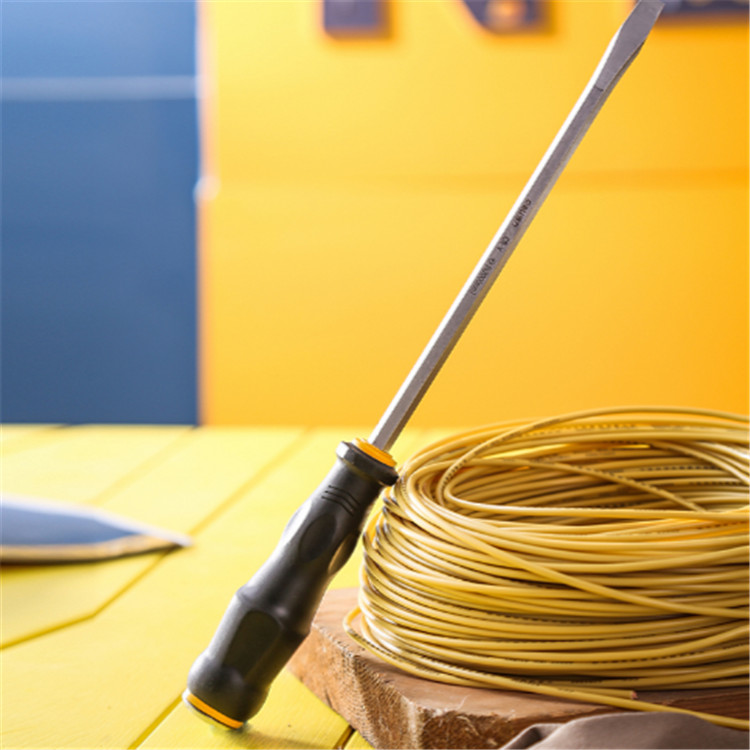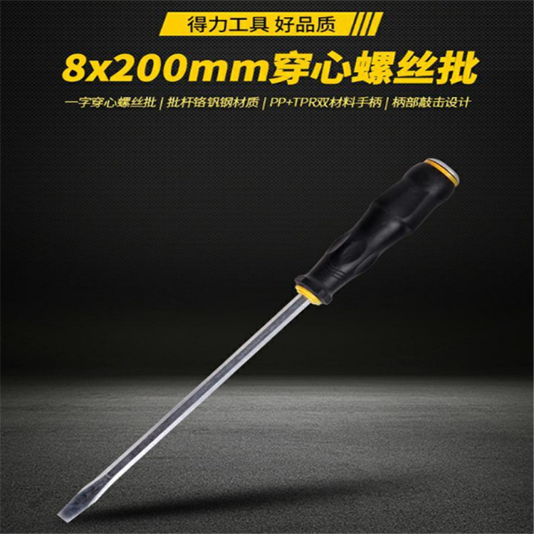 得力鉻釩鋼橡膠柄一字穿心螺絲刀敲擊起子防滑沖擊螺絲刀批