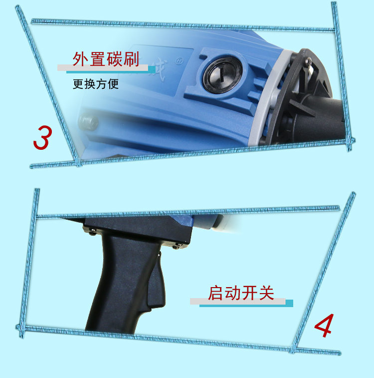 全銅電機(jī)\強(qiáng)大功率\有效散熱\輕松操作\舒適握柄\延長(zhǎng)壽命