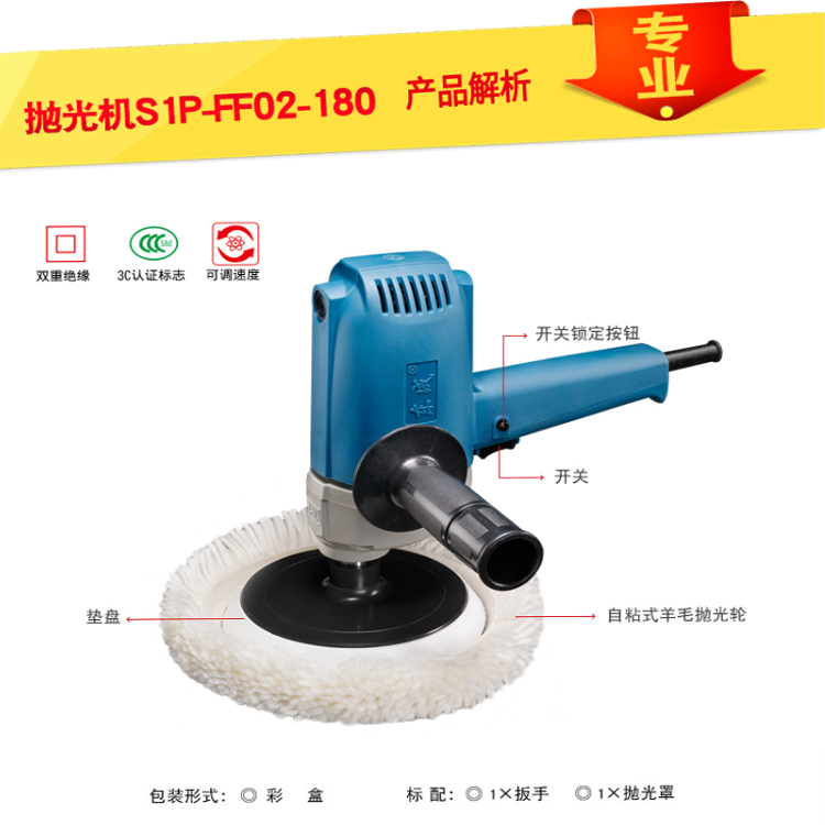 東成拋光機S1P-FF-180拋光機750W可調(diào)速羊毛輪打蠟拋磨機