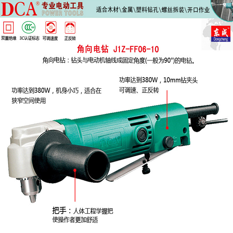 DCA角向電鉆J1Z-FF06-10加裝鉆夾頭組件可搭配各種型號鉆頭完成各項(xiàng)鉆孔工作