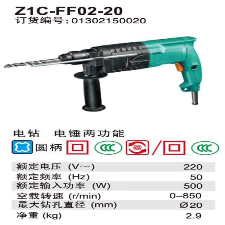 DCA電錘Z1C-FF02-20電錘是用來在混凝土、磚、石頭等硬性材料上開孔的。