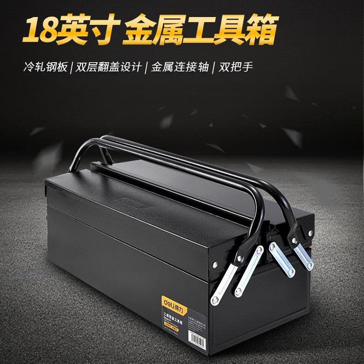 得力二層鐵盒工具箱收納盒大號車載五金收納電工維修收納箱