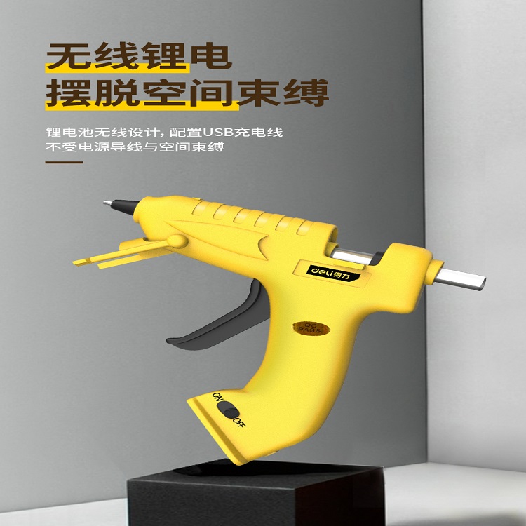 得力鋰電熱熔膠槍鋰電池?zé)o限設(shè)計(jì),配置USB充電線不受電源導(dǎo)線與空間束縛