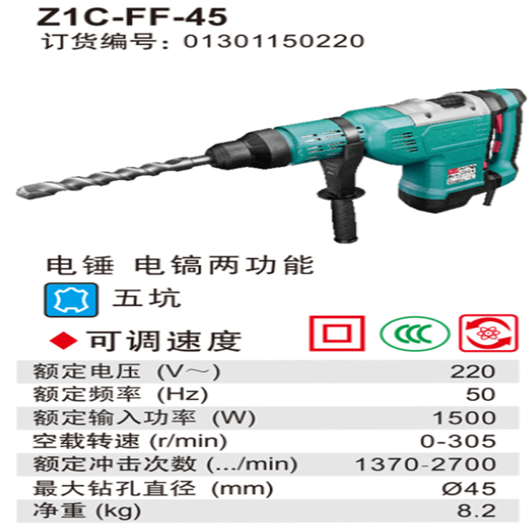 DCA電錘Z1C-FF-45電錘是用來在混凝土、磚、石頭等硬性材料上開孔的。