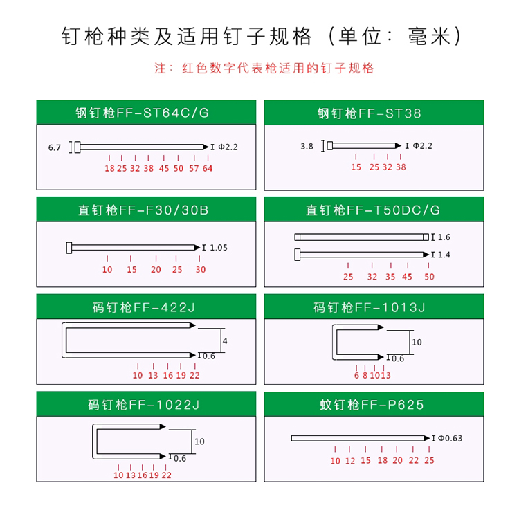 碼釘槍各型號(hào)參數(shù)及包裝清單