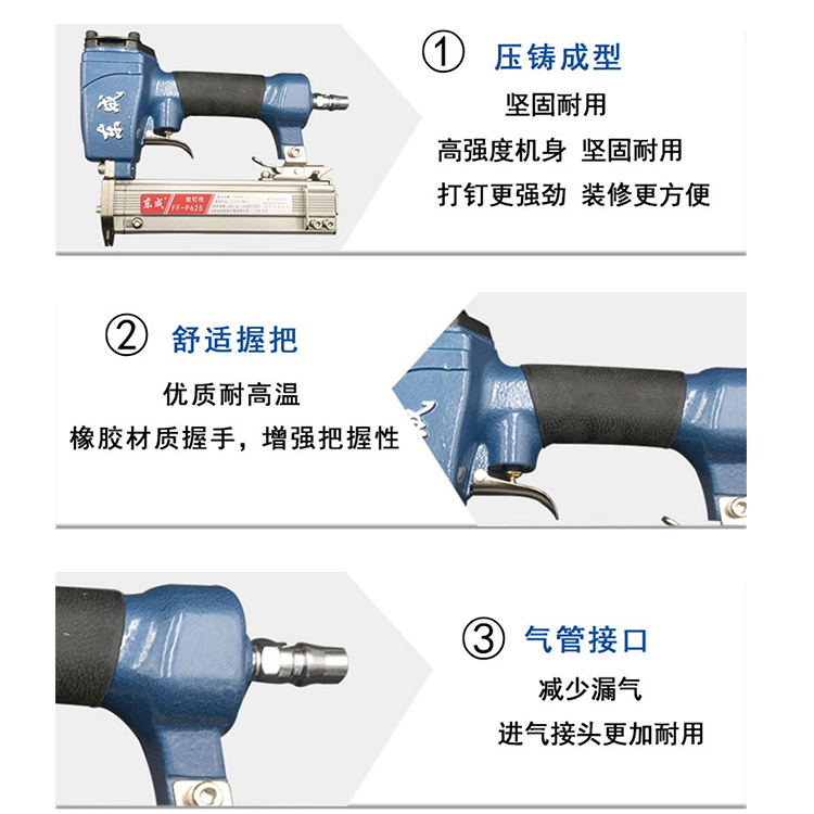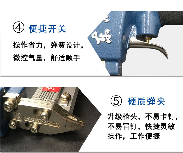 直釘槍壓鑄成型/舒適握把/氣管接口/便捷開關(guān)/硬質(zhì)彈夾
