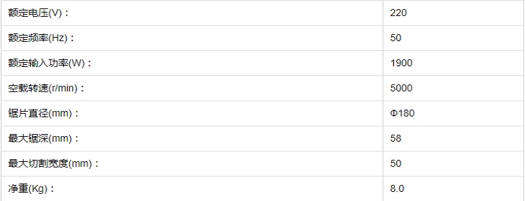 東成開(kāi)槽機(jī)Z1R-FF-180石材切割機(jī)混凝土磚墻開(kāi)槽機(jī)云石機(jī)基本參數(shù)