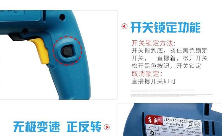 東成手電鉆J1Z-FF05-10A 家用大功率電鉆電動(dòng)工具可正反轉(zhuǎn)調(diào)速、開(kāi)關(guān)鎖定
