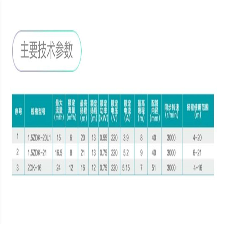 新界離心式清水電泵參數(shù)圖