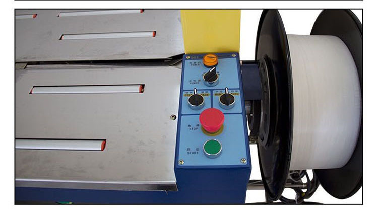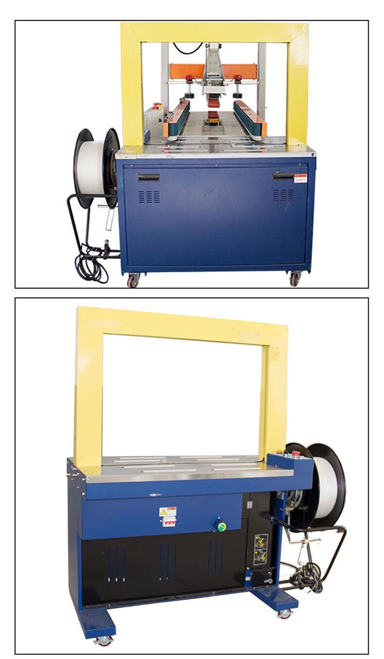 在插入包裝帶后,機器能自動完成聚帶、熱合、切斷、并出帶的捆扎過程;且有自動停機之功能;打包機是使用打包帶纏繞產(chǎn)品或包裝件,然后收緊并將兩端通過熱效應(yīng)熔融或使用包扣等材料連接的機器,其工作速度快、效率高、省時省力、捆扎質(zhì)量高。