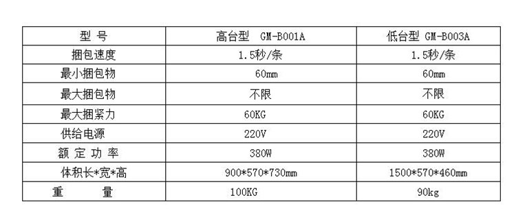 華展牌紙箱打包機(jī)高臺(tái)GM-B001A半自動(dòng)打包機(jī) /捆扎機(jī) 商品參數(shù)圖