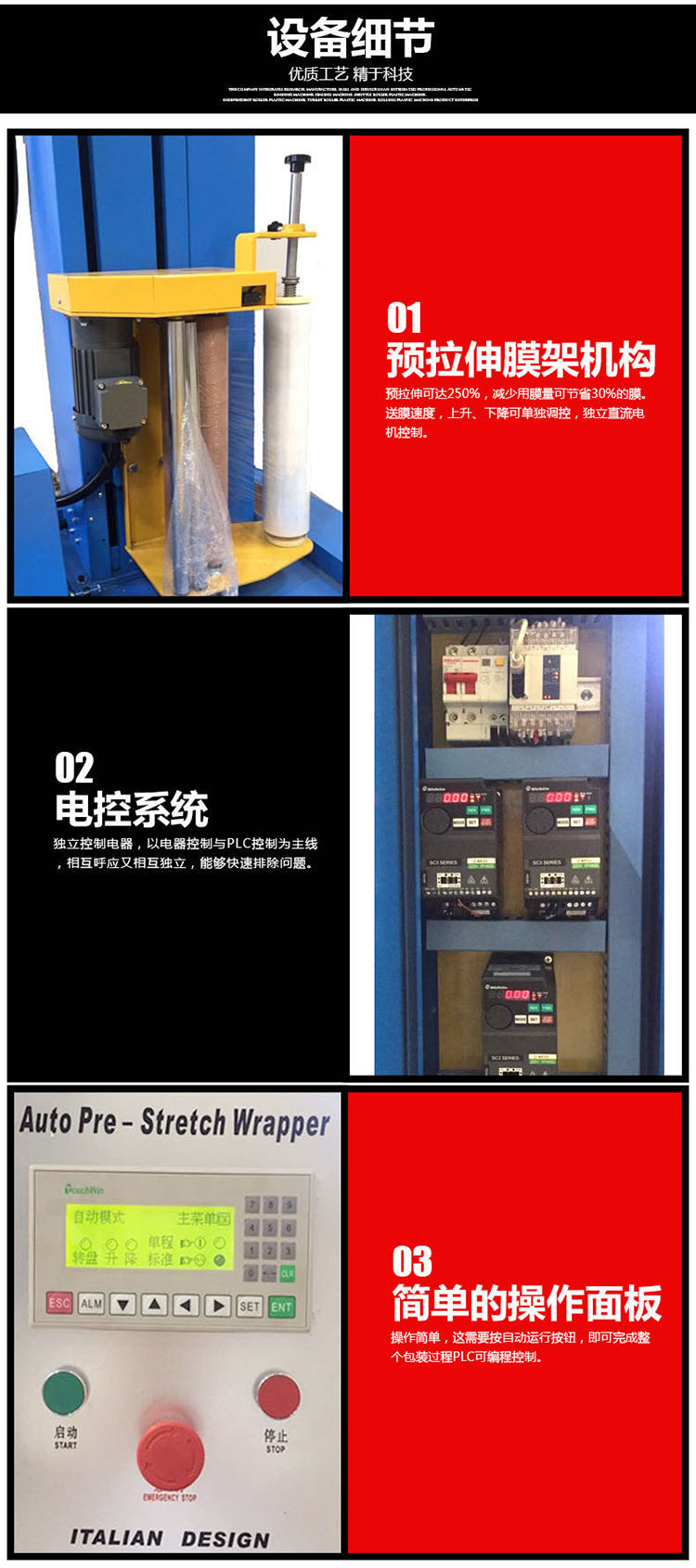 拉伸膜纏繞機(jī)廣泛應(yīng)用于玻璃制品、五金工具、電子電器、造紙、陶瓷、化工、食品、飲料、建材等行業(yè)。能夠提高物流效率、減少運(yùn)輸過程中的損耗,具有防塵、防潮、降低包裝成本等優(yōu)點(diǎn),是提升產(chǎn)品包裝檔次的理想選擇。