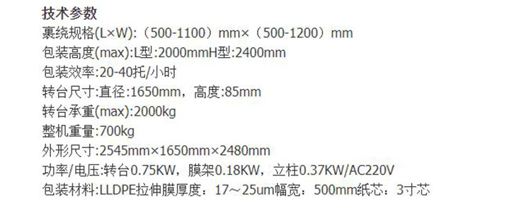 光明牌GM2000-B拉伸膜纏繞機(jī)/薄膜纏繞機(jī)/自動(dòng)纏繞機(jī)/纏繞機(jī) 商品參數(shù)圖
