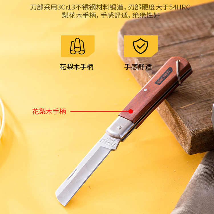 電工刀木柄直刃電工刀 不銹鋼材料 花梨木手柄 切割力強(qiáng)