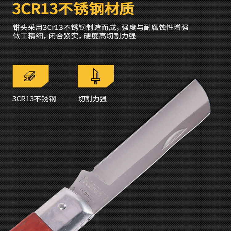 電工刀鉗頭采用3CR13不銹鋼制造而成 做工精細(xì) 閉合緊實(shí)