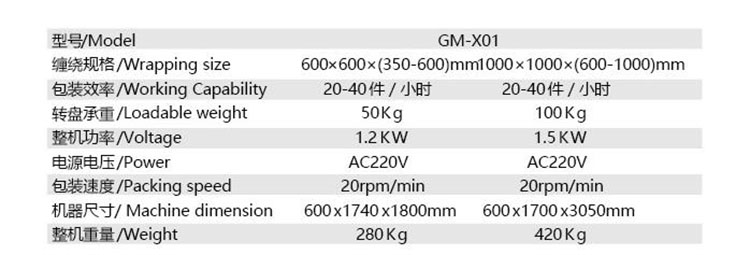 - 型號名稱GM-X01無托盤纏繞包裝機