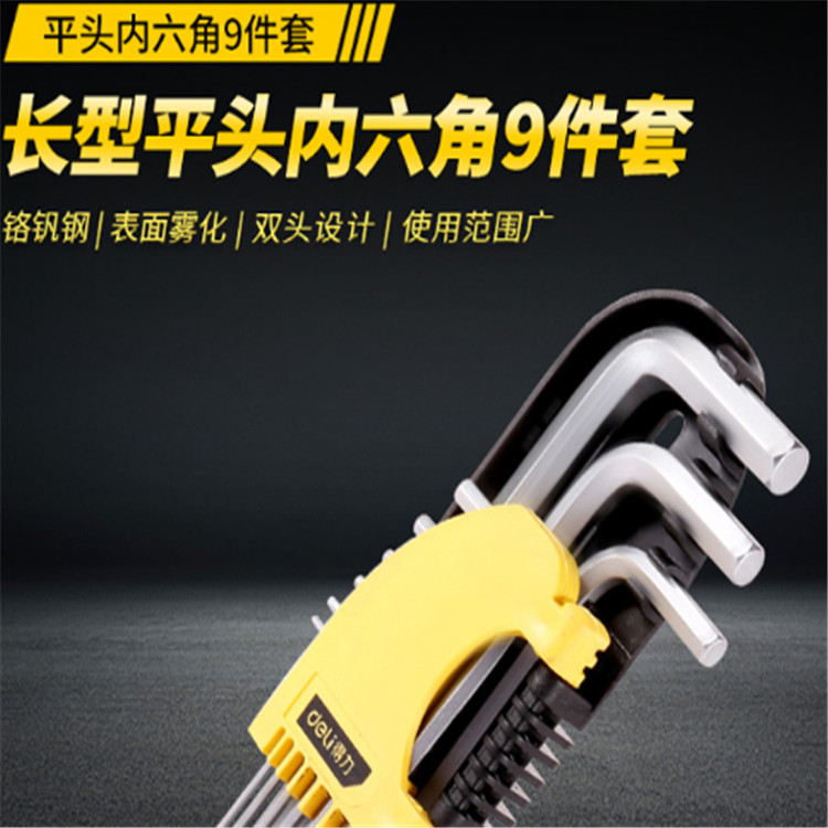 得力長(zhǎng)型平頭內(nèi)六角9件套鉻釩鋼內(nèi)六角扳手