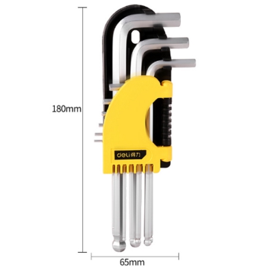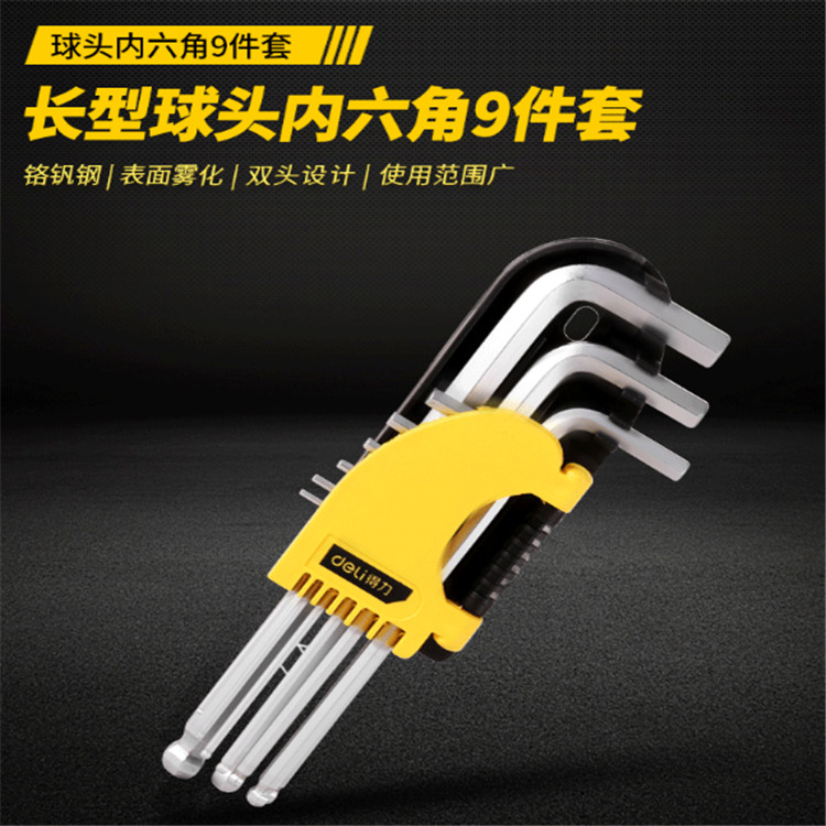 得力長型球頭內(nèi)六角9件套平頭球頭花型公英制吊環(huán)內(nèi)六方加長