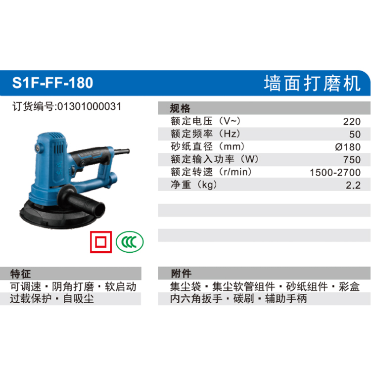東成墻面打磨機(jī)S1F-FF-180精品銅線電機(jī),無極調(diào)速效率高壽命長