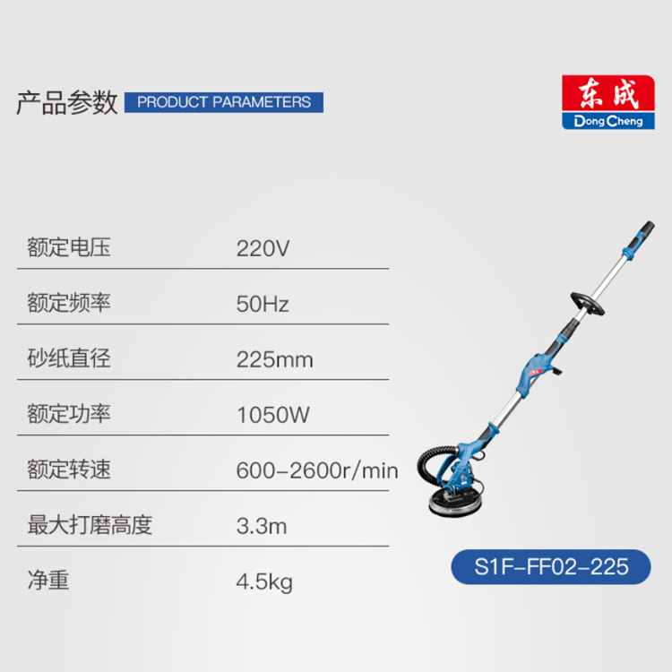 東成墻面打磨機S1F-FF02-225收縮加長桿高處打磨便捷